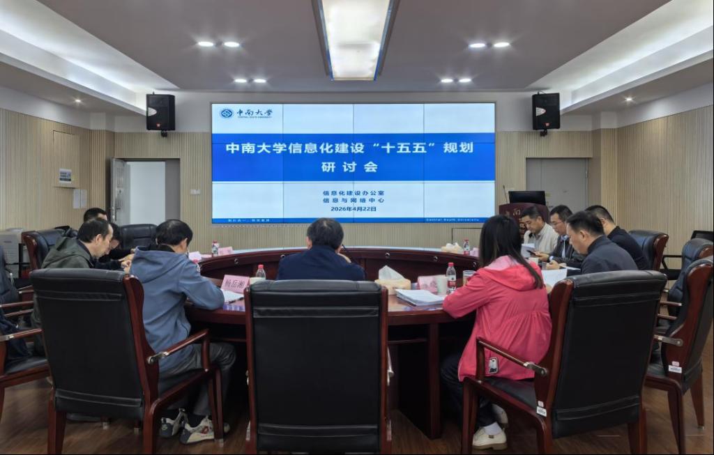 为推动树立和践行正确政绩观学习教育进一步走深走实,践行以信息化赋能发展和服务师生为核心的工作理念,高质量编制中南大学信息化建设“十五五”规划,2026年4月22日,信息与网络中心组织召开中南大学信息化建设“十五五”规划专家研讨会。受邀出席会议的中南大学网络安全和信息化建设专家组成员有王建新、宋海波、杨岳湘、何海涛、吴驰、马斌、张淼等校内外资深专家。中心主任奎晓燕主持会议,中心全体班子成员及业务骨干参加了会议。