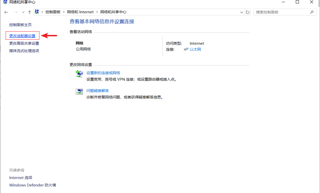 1.打开【控制面板】→【网络和Internet】→【网络和共享中心】→【更改适配器设置】